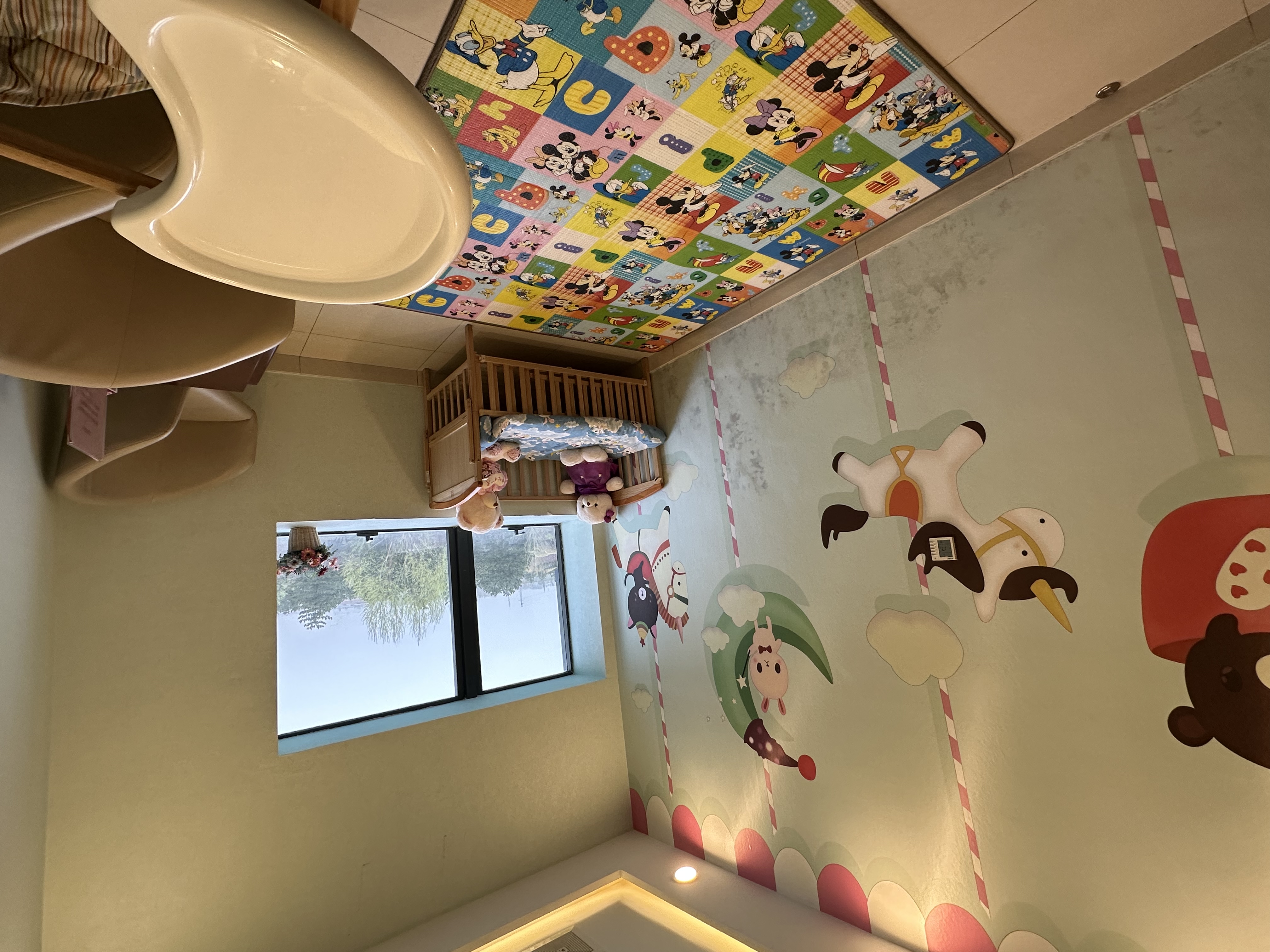 母婴室,设爬行垫、沙发座椅、婴儿床、儿童座椅、婴儿座便器=等。