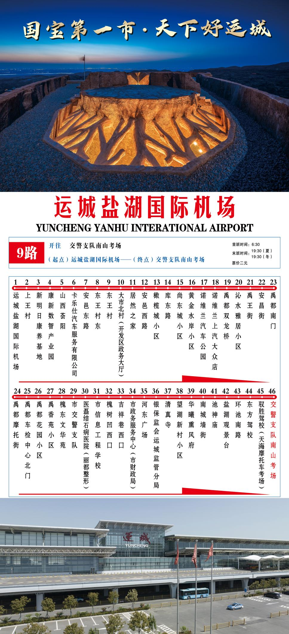 ③9路公交车(运城盐湖国际机场----交警支队南山考场)